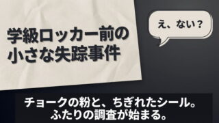 教室で鉛筆ケースが消えた 1章 学級ロッカー前の小さな失踪事件 廊下の窓から、午後の光が斜めに差しこんでいた。光の筋の中を、ちいさなホコリがキラキラ舞っている。まるで映画のスローモーションみたいに。「カチャン」だれかがロッカーのとびらを閉めた音が、学級のざわめきのすき間をすべってきた。その音のあと、ほん... 2025.12.28 教室で鉛筆ケースが消えた
